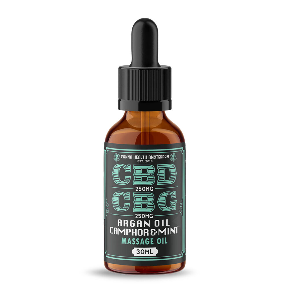 CBD – CBG ΛΑΔΙ ΓΙΑ ΜΑΣΑΖ: Αργανέλαιο, Καμφορά & Μέντα – 250 mg CBD, 25O mg CBG