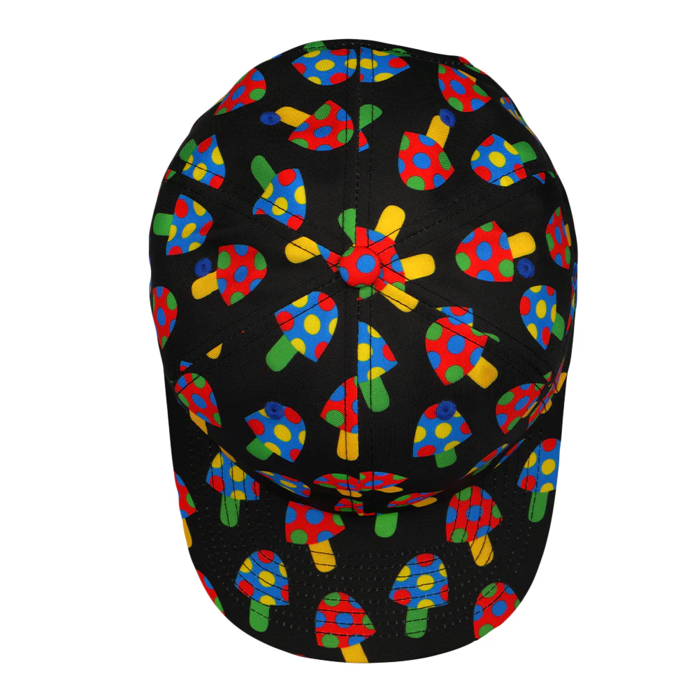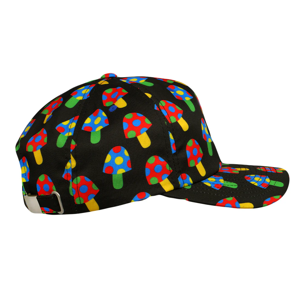 Αυτό το καπέλο διαθέτει ζωντανή εκτύπωση εξάχνωσης με πολύχρωμα μανιτάρια σε μαύρη βάση, καθιστώντας το ένα διασκεδαστικό αλλά κομψό κομμάτι. Διαθέτει προ-καμπυλωτό χείλος, σατέν επένδυση και μια τσέπη καταχωνιασμού για λειτουργικότητα. Το ρυθμιζόμενο κλείσιμο με ιμάντα εξασφαλίζει άνετη εφαρμογή και με μόνο 200 διαθέσιμα κομμάτια, αυτό το καπέλο περιορισμένης έκδοσης προσφέρει αποκλειστικότητα. Ιδανικό για όσους εκτιμούν τον τολμηρό σχεδιασμό και το μοναδικό στυλ!