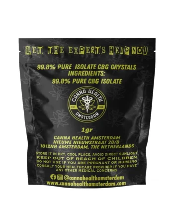 Το CBD και το CBG του Canna Health Amsterdam προέρχονται από βιομηχανική κάνναβη, και το μόνο διαλυτικό που χρησιμοποιείται είναι η αιθανόλη. Είμαστε σταθεροί στη δέσμευσή μας για καθαρά και κορυφαία CBD και CBG, επομένως θέτουμε τον πήχη ψηλά. Η αιθανόλη υψηλής ποιότητας που χρησιμοποιείται για την εξαγωγή υπερβαίνει ακόμα και τα πιο αυστηρά πρότυπα της φαρμακοποιίας της ΕΕ. Οι ανώτερες διαδικασίες επεξεργασίας εξασφαλίζουν το πιο αγνό προϊόν, προσφέροντας ικανοποίηση σε κάθε σταγόνα.